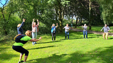 Workshop 2 “Slow Sports” werd verzorgd door Madeleine Heijne (fysiotherapeut). Wandelen in de natuur (deze keer vertrek vanaf Atletiekbaan) afgewisseld met oefeningen voor kracht, lenigheid, balans en coördinatie. Met ontspanning en plezier bewegen, waarbij ieder op zijn eigen niveau wordt uitgedaagd.