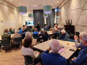 Ruim 30 gasten wisten de weg naar de Hof van Salland in Diepenveen te vinden. In afwijking van de gebruikelijke eerste woensdag van de maand vond de bijeenkomst plaats op de laatste woensdag van januari, omdat 7 januari wegens het winterse weer niet doorging.