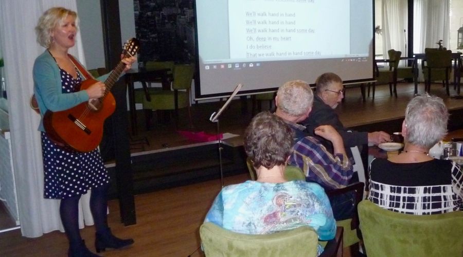 Het was een feestelijke middag met lekkere hapjes, samen liedjes zingen olv Jeike de Haan en een fotopresentatie van de afgelopen vijf jaar (27 Parkinson Cafés). De sfeer was relaxed en gemoedelijk en veel mensen bleven nazitten.