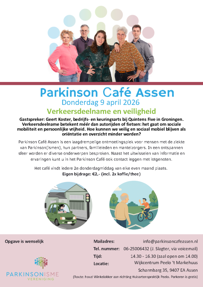 - 17-04-2026 17-04-2026 14:00 - Parkinson Café 17 april in Winschoten: Parkinson, wat doet dat met u in uw leven?
