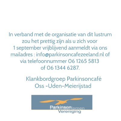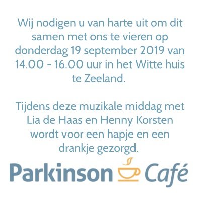 - 23-09-2019 23-09-2019 16:43 - Parkinsoncafé dinsdagavond 8 oktober 2019